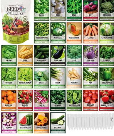 Gardeners Basics Survival Vegetable Seeds Garden Kit Over 16,000 Seeds Non-GMO and Heirloom, Great for Emergency Bugout Survival Gear 35 Varieties Seeds for Planting Vegetables 35 Free Plant Markers
