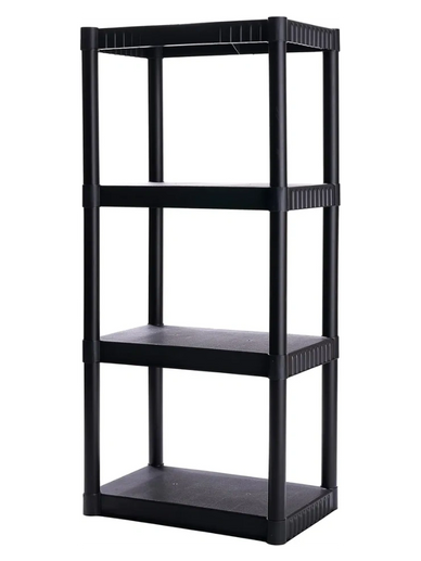 Plano 4-Shelf Plastic Storage Shelves, 48” x 23” x 14”, 200lb Capacity, Pantry, Office, Closet and Garage Shelves, Easy to Assemble, Durable Plastic Shelving Unit